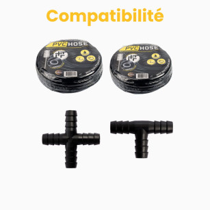 Compatible con tubos de media pulgadaSistema de riego sin abrazaderas ni pegamentosDiseñado para sistemas de baja presiónDistribución eficiente del...