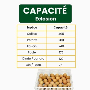 En el mundo de la cría, ya sea un aficionado apasionado o un profesional experimentado, la nacedora es un equipo imprescindible para garantizar el éxito de la eclosión de los huevos. Diseñada para la fase de eclosión, permite crear un entorno controlado y estable para los huevos al final de la incubación. Gracias a un control preciso de la temperatura, la humedad y la ventilación, este aparato optimiza el desarrollo del pollito y aumenta la tasa de éxito. En Eggceterra, nuestra tienda online especializada en la cría en Francia, encontrará una selección de modelos diseñados por las marcas Cimuka y Puisor. Automatizadas, manuales, de gran capacidad o para pequeños lotes, estas nacedoras responden a cada necesidad, con ofertas adaptadas y productos de alta calidad.